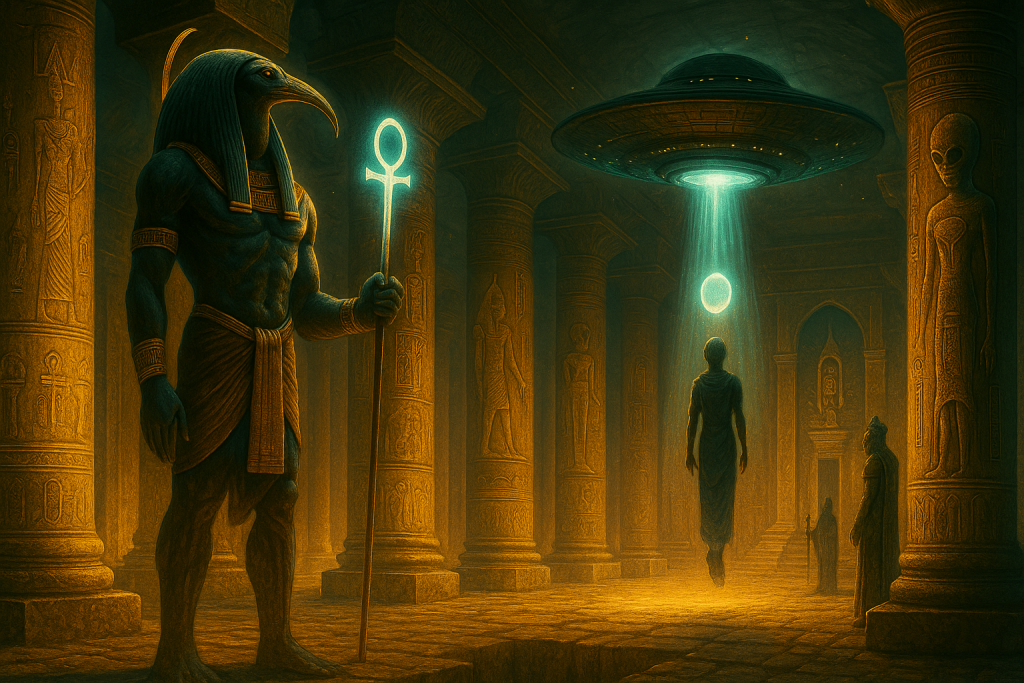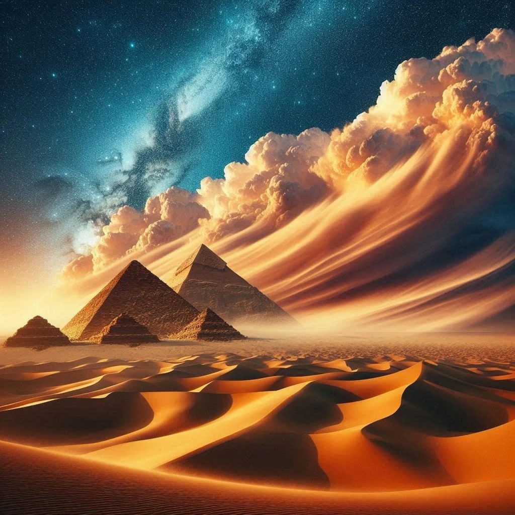 Secondo il racconto, Thoth avrebbe edificato l’ingresso a questo spazio ultraterreno proprio in corrispondenza della Piramide di Cheope, come a voler indicare un punto preciso della geografia sacra.