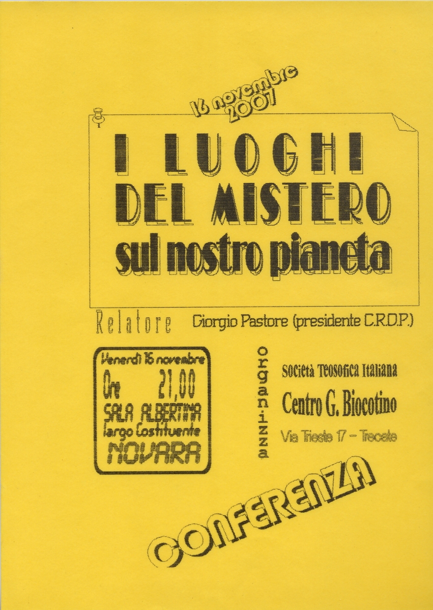 ARCHIVIO STORICO DELLE ATTIVITÀ, DELLE INDAGINI E DEGLI INCONTRI ORGANIZZATI DAL C.R.O.P. (O A CUI HA PARTECIPATO GIORGIO PASTORE NEL CORSO DEGLI ANNI)