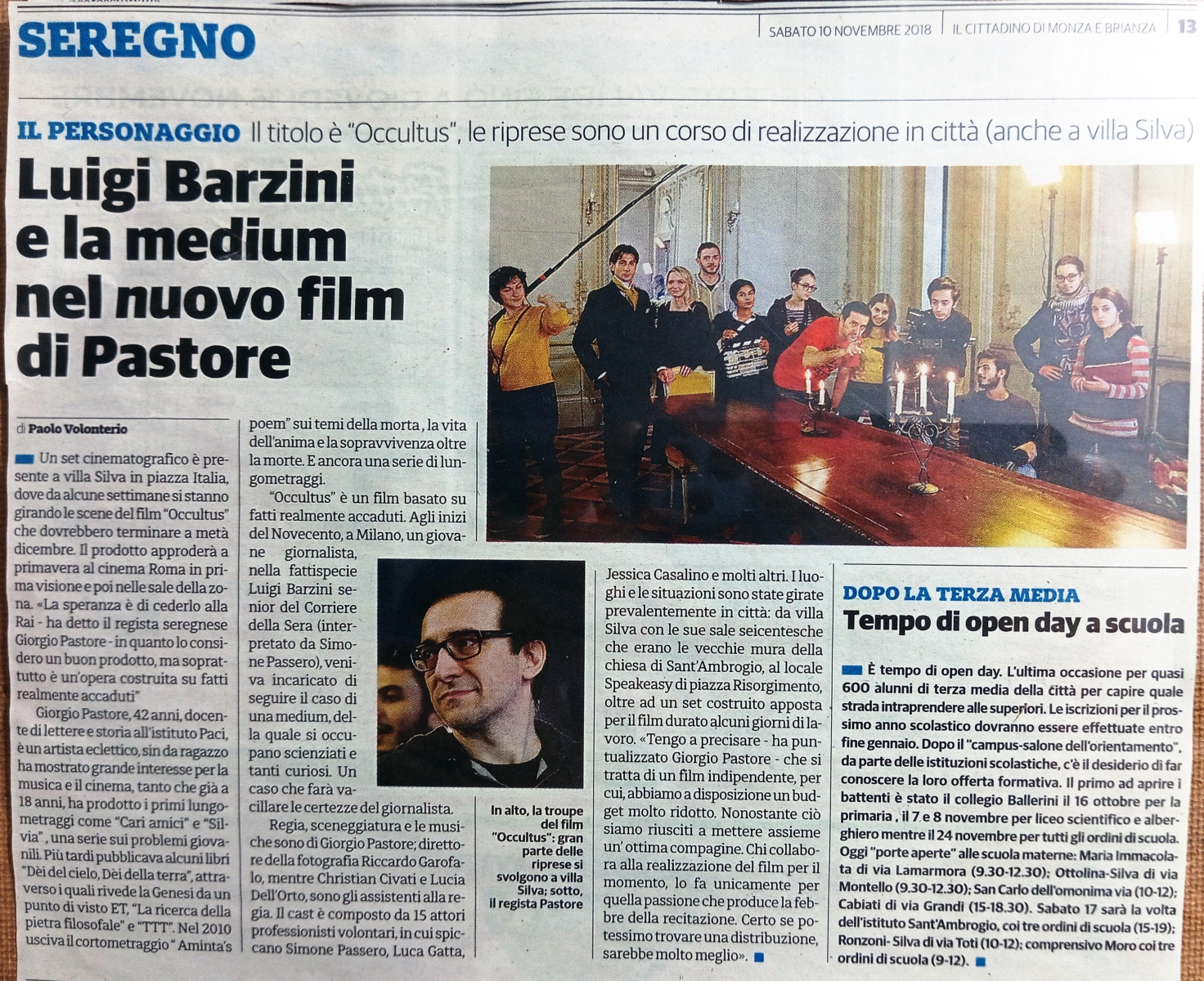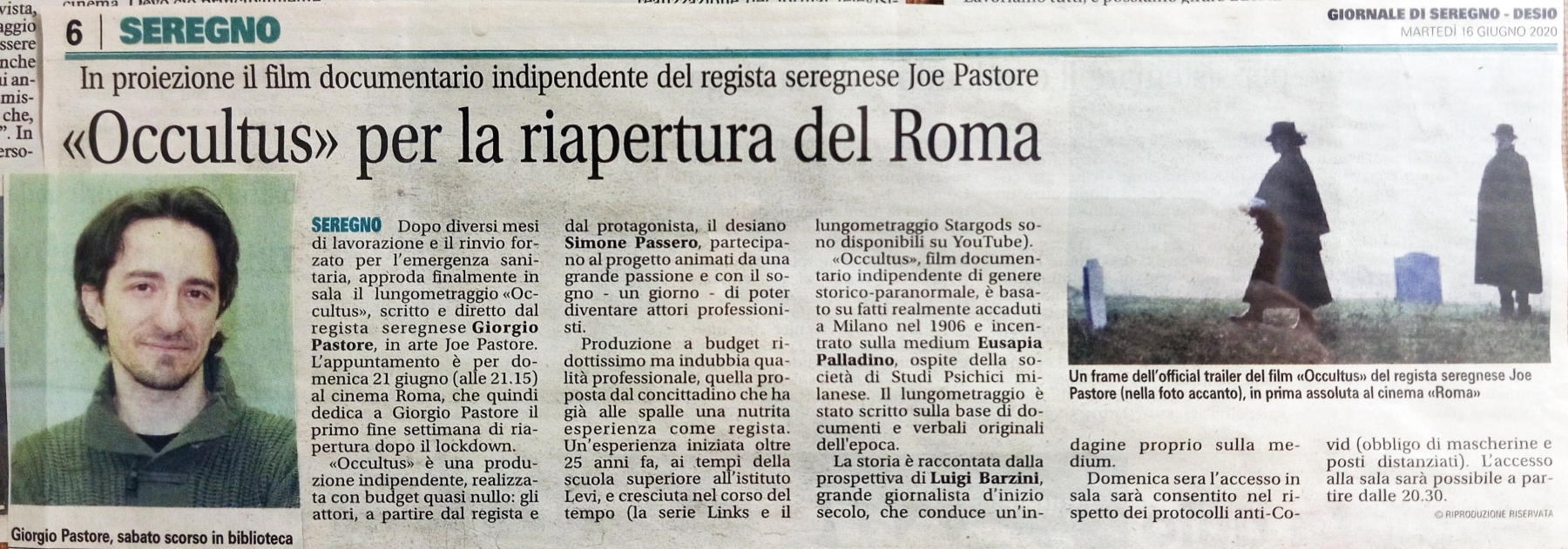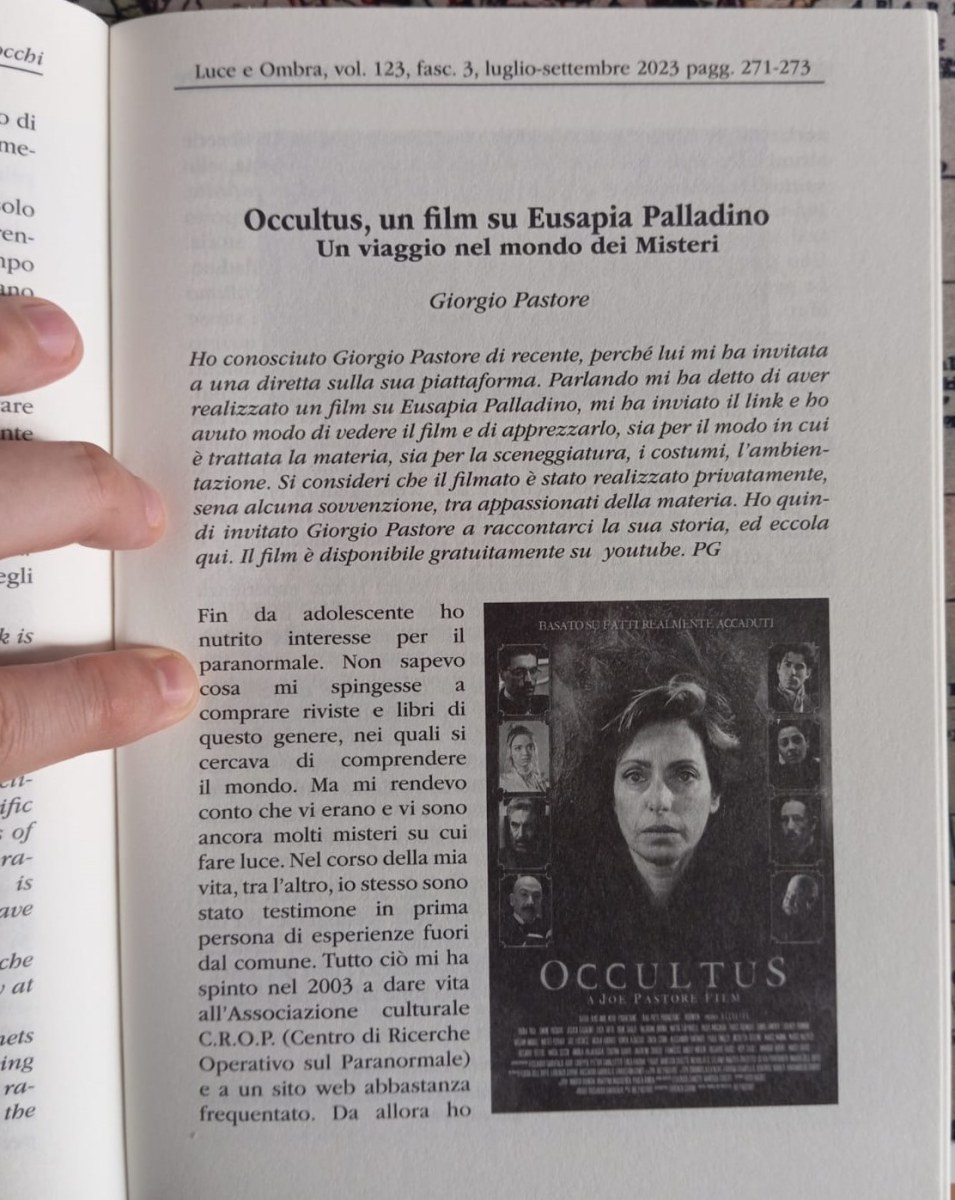 Presentazione del film Occultus sulla rivista Luce e Ombra (Anni 123, n°3)